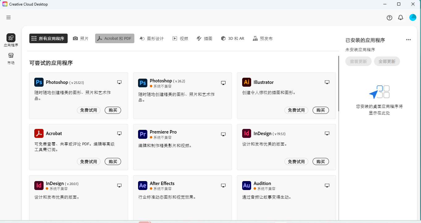 在Adobe Creative Cloud的安装没话说,直接懒人一顿操作,网速+电脑性能好的没几下就下载安装好了,没有什么技术可言。但是注意以下几点。